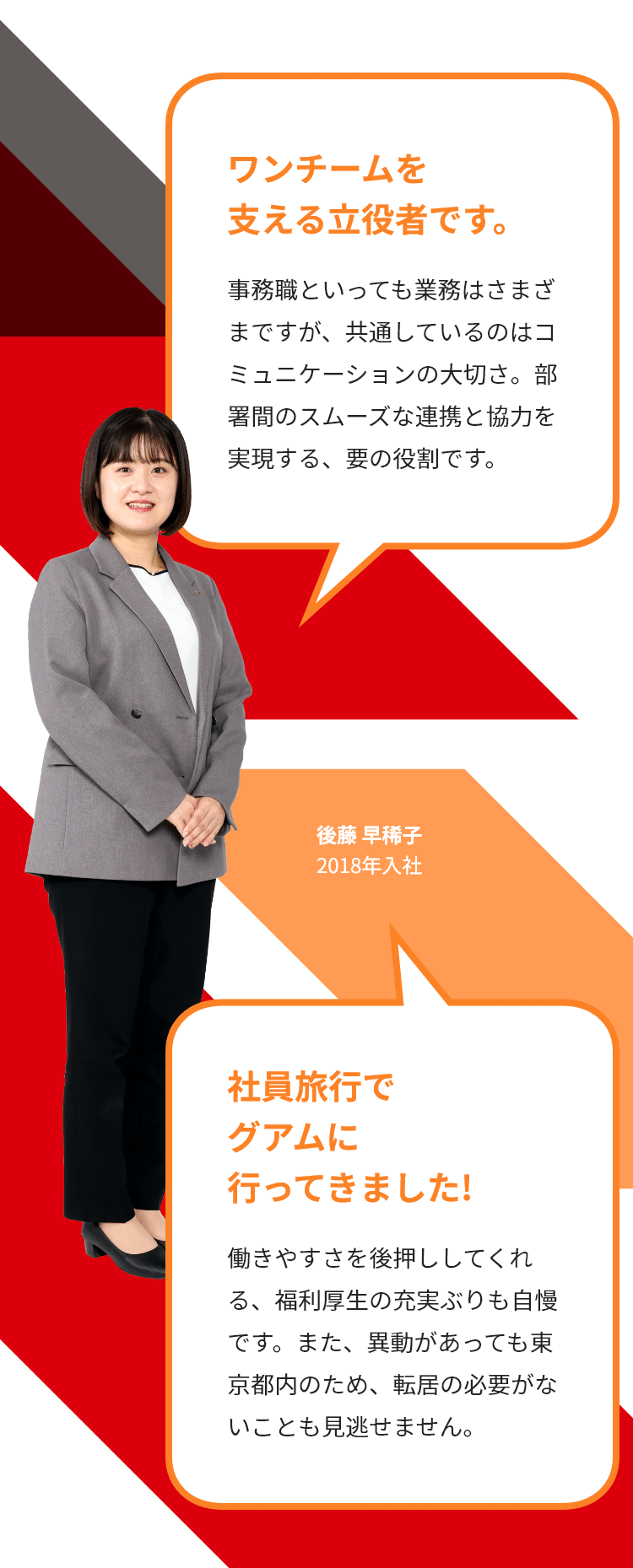 後藤「締め切り・約束を守ること。当然のことですが、お客様のみならず同僚や上司の信頼に大きく影響します。良いことよりも悪いことを優先して報告することも意識しています。」
