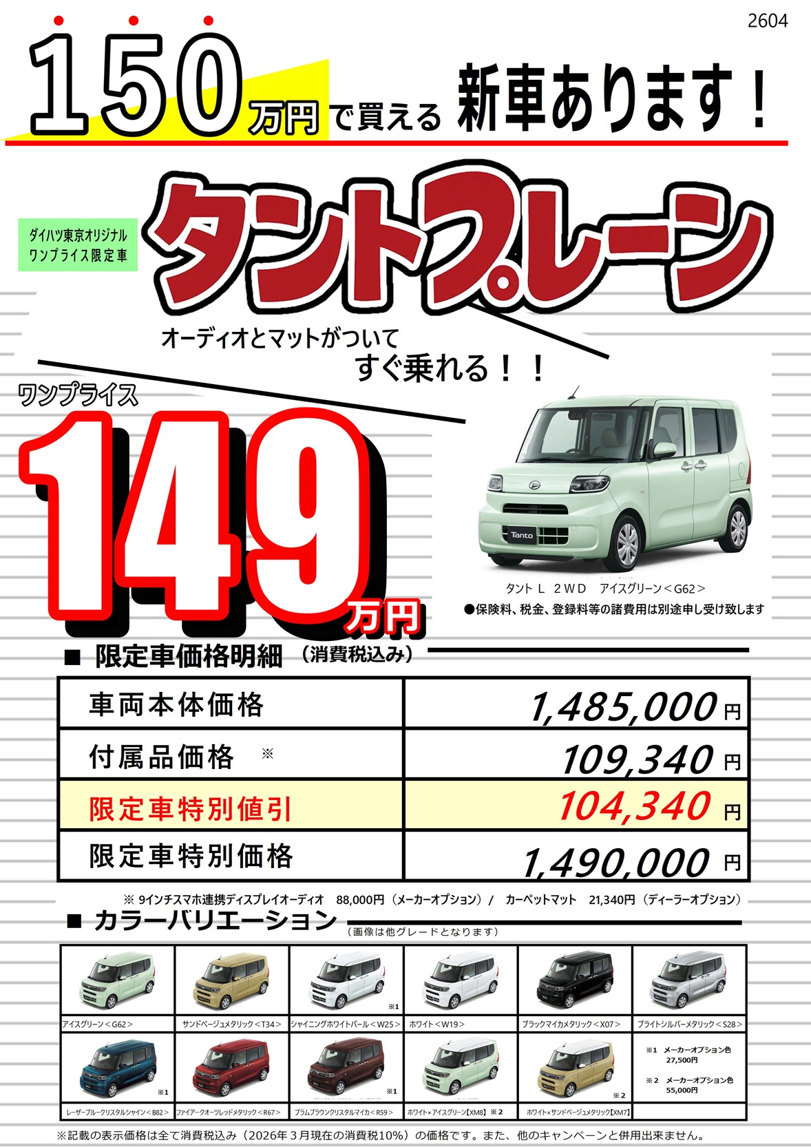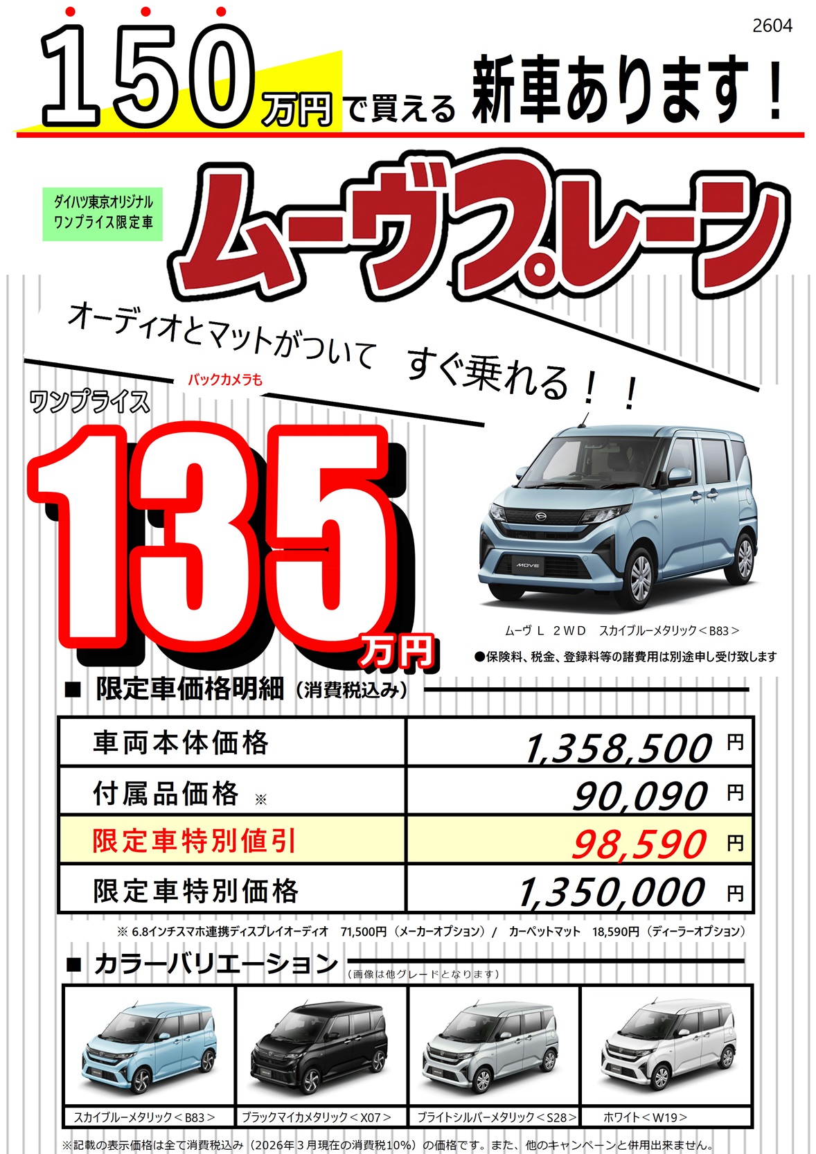 ■各種スマートアシストは、ドライバーの運転支援を目的としているため、機能には限界があり、路面や天気等の状況によっては作動しない場合があります。機能に過信せず、安全運転を行ってください。■本キャンペーンの内容、および期間は予告なく変更となる場合があります。■詳しくは店舗スタッフまでお問い合わせください。