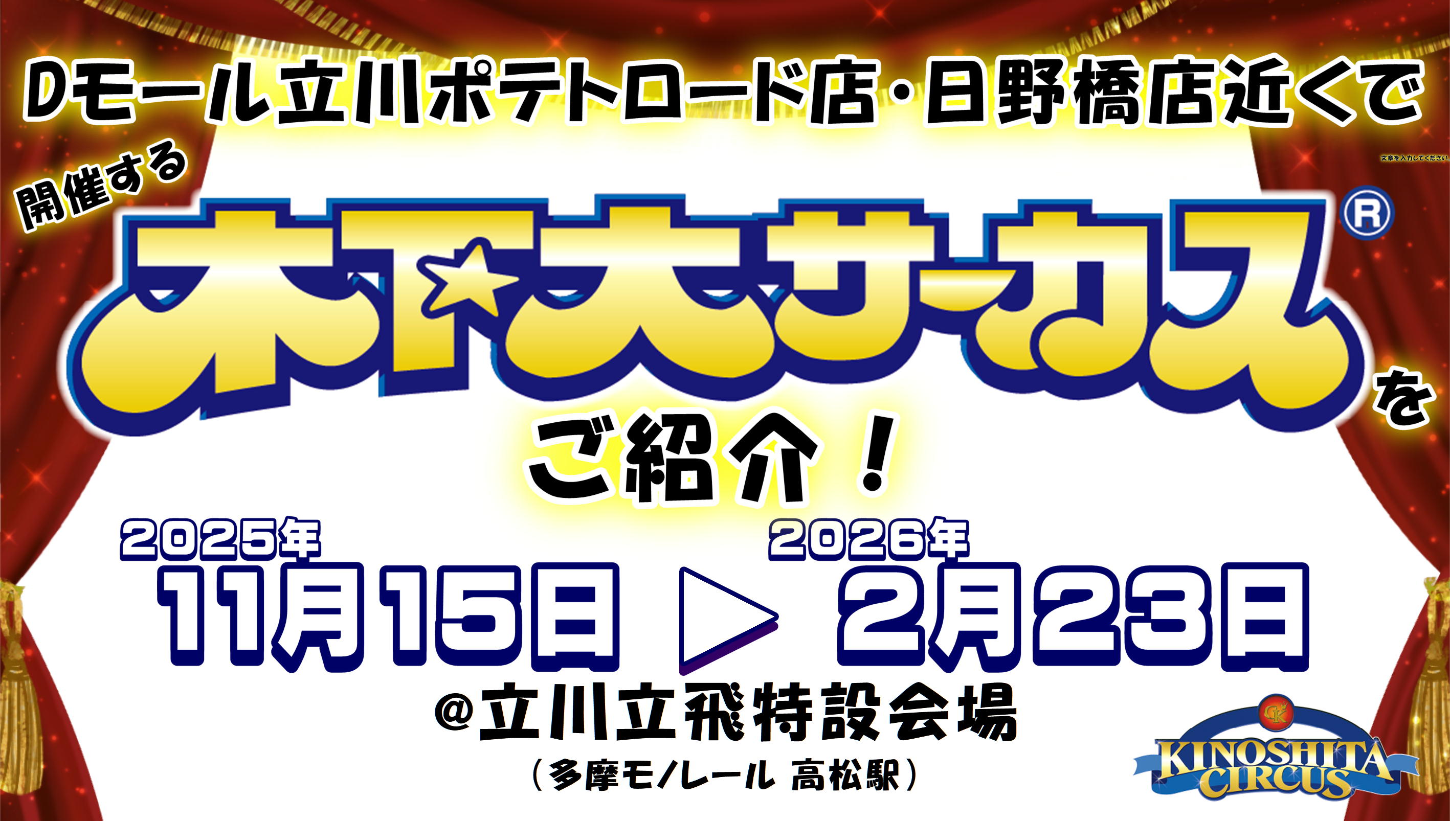 Dモール立川ポテトロード店近くで木下大サーカスが公演開始!!