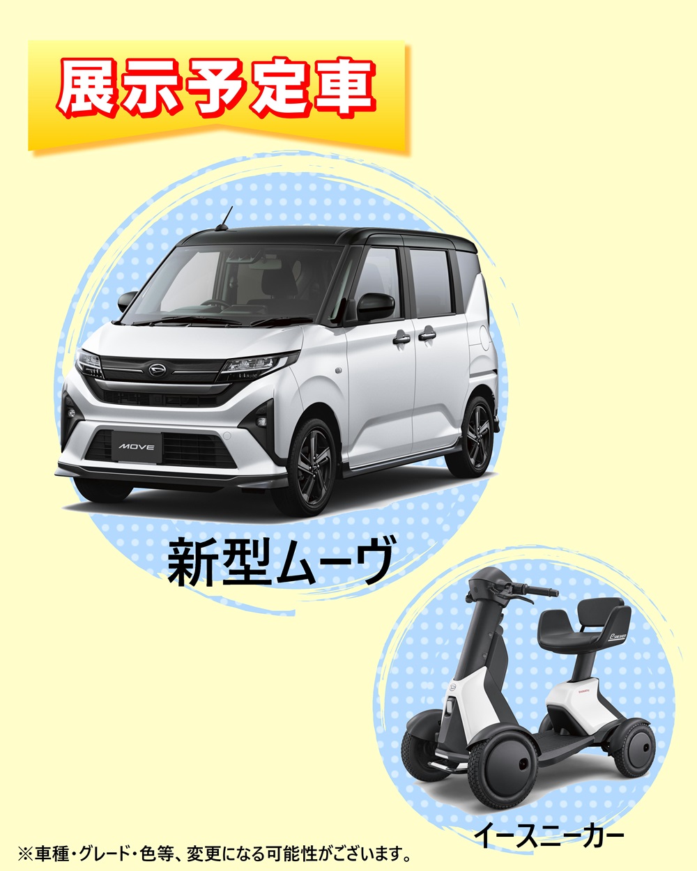 人気の新型ムーヴと話題のイースニーカーも展示します!