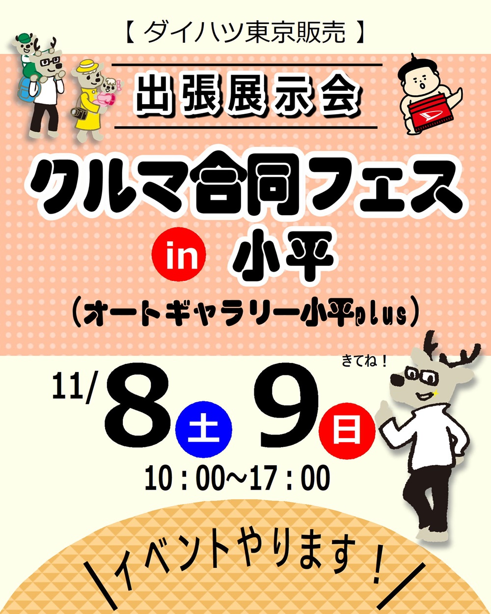 11月8日(土)・9日(日)にトヨタモビリティ東京 オートギャラリー小平plus で、「クルマ合同フェス」を開催します!