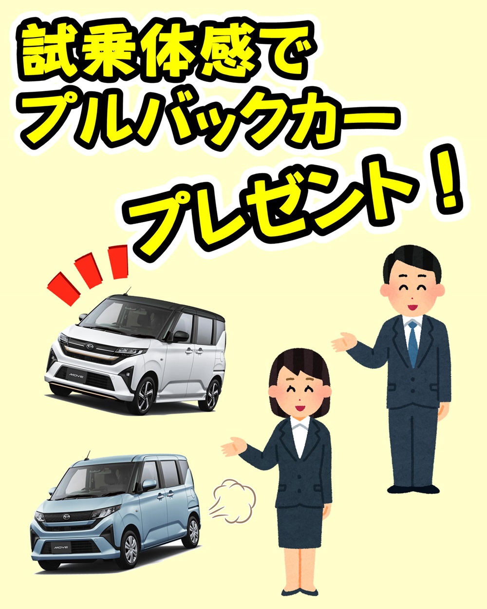 さらに試乗していただくと、ムーヴのプルバックミニカーをプレゼント!!