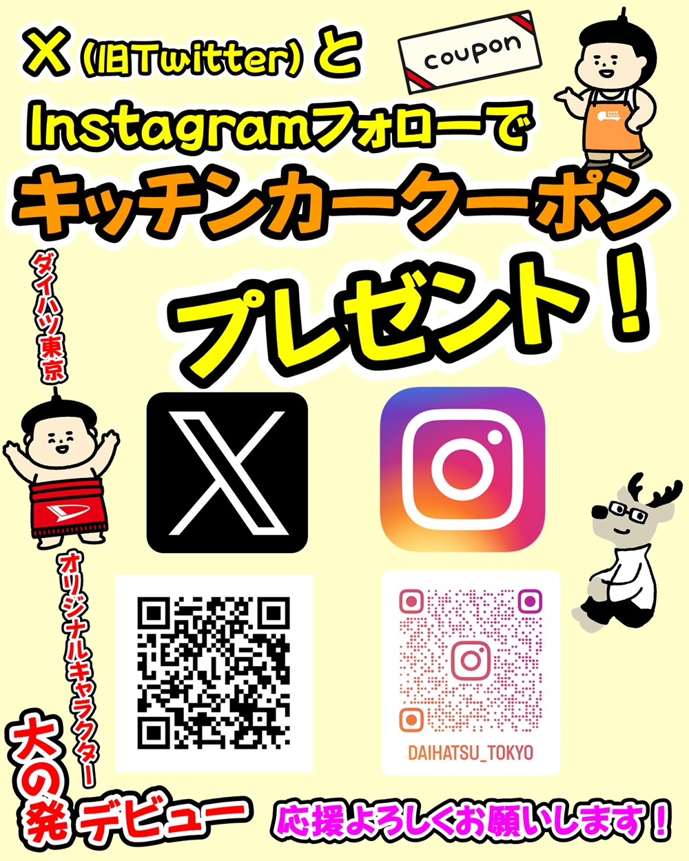 ダイハツではX(旧ツイッター)とInstagramのフォローでキッチンカークーポンプレゼント!