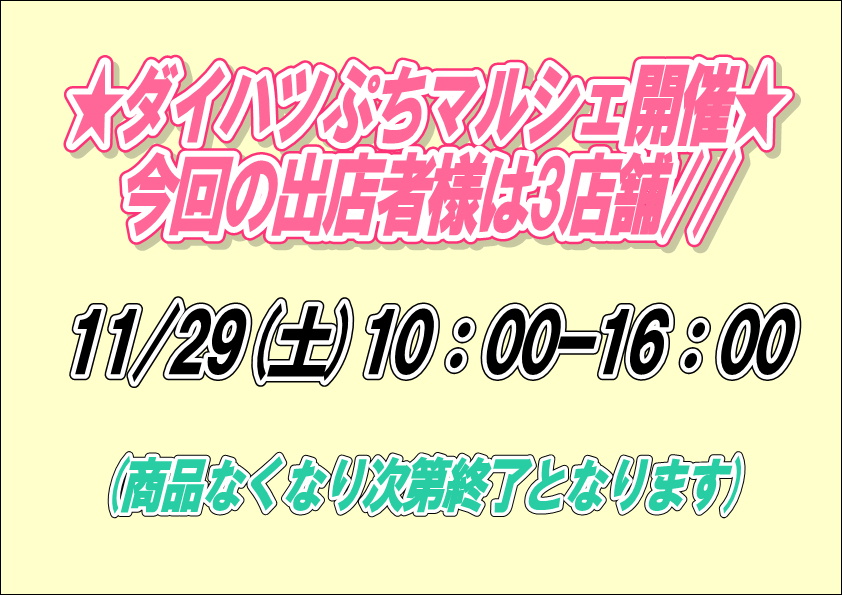 ダイハツぷちマルシェ11/29(土)開催いたします★