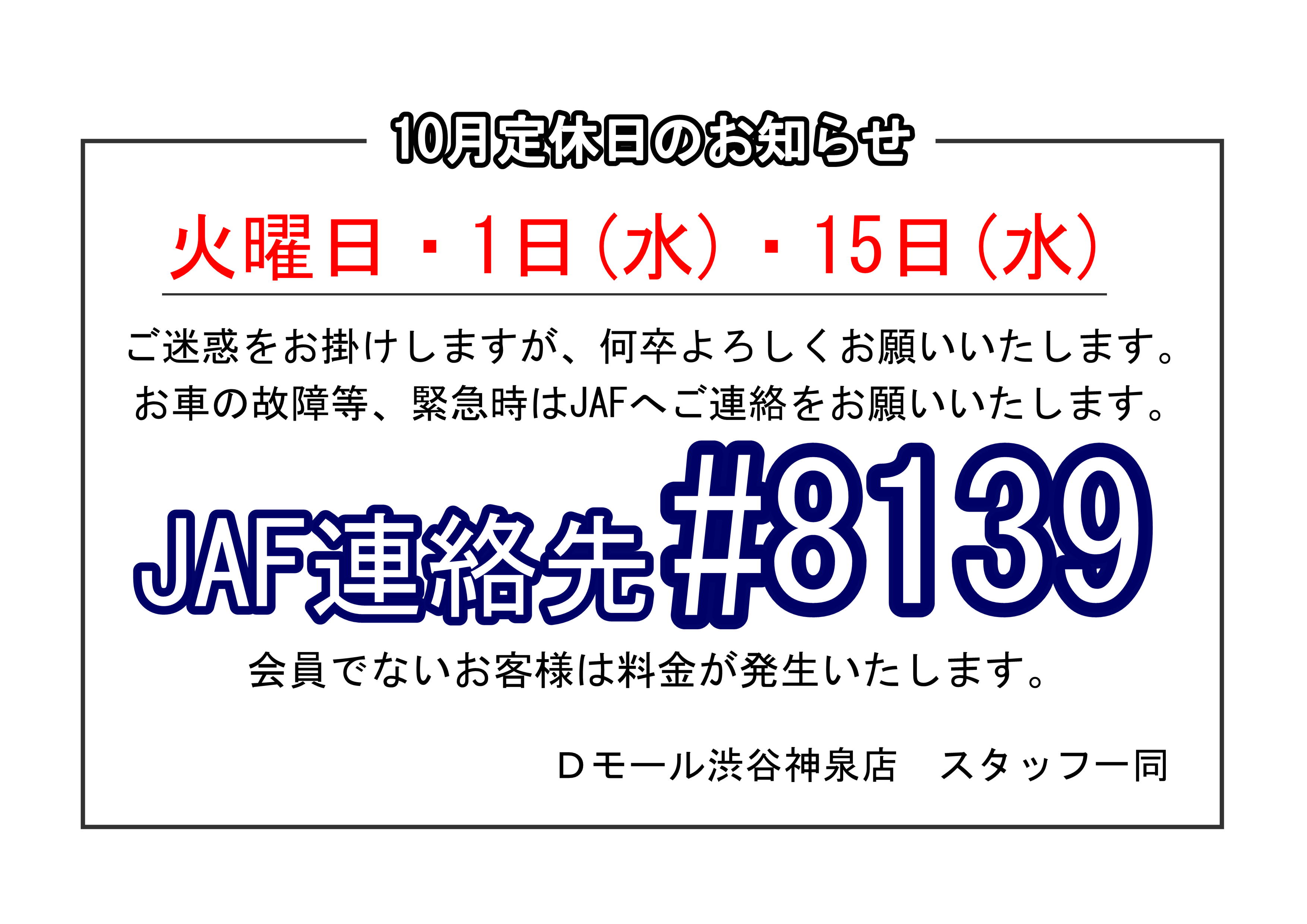 2025年10月04日町田金森店🌰10月定休日のお知らせです🌰