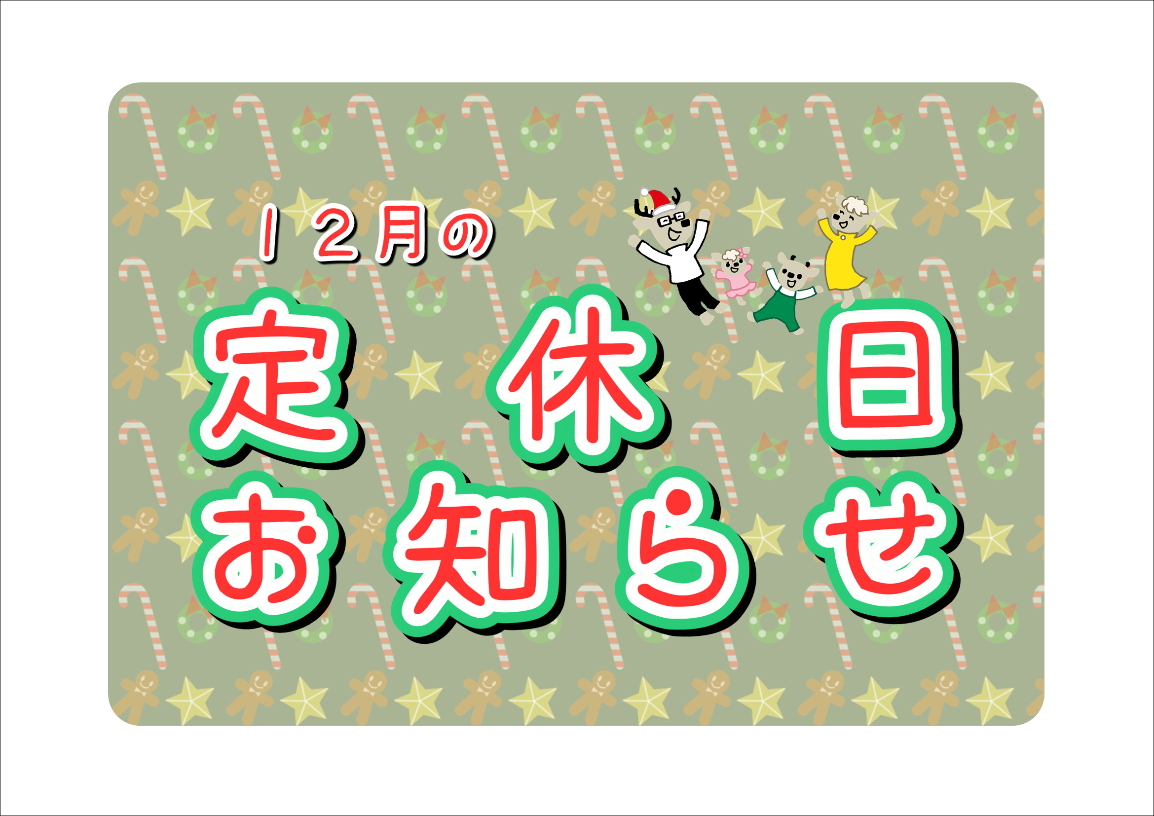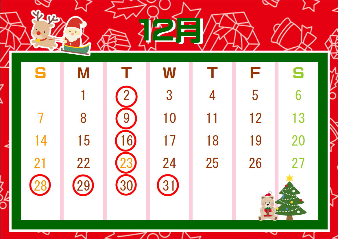 定休日のご案内🎄12月🎄