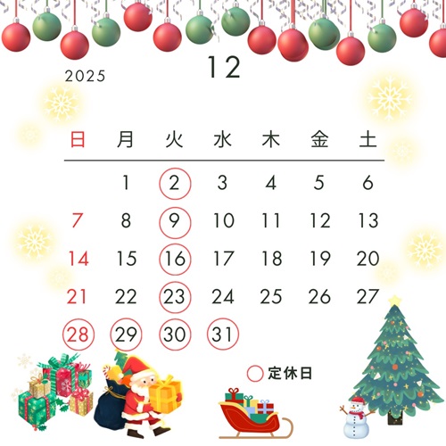 🎄12月定休日のお知らせです🎄