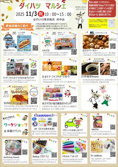 地元府中近隣の人気店やキッチンカー、お子様が参加できるワークショップ等