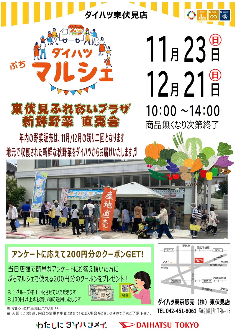 今月は11月23日(日) 新鮮な野菜をお届けします!!