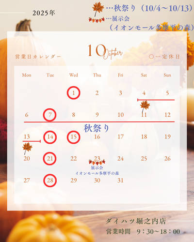 秋フェア・出張展示会などワクワクな一ヵ月となります♪