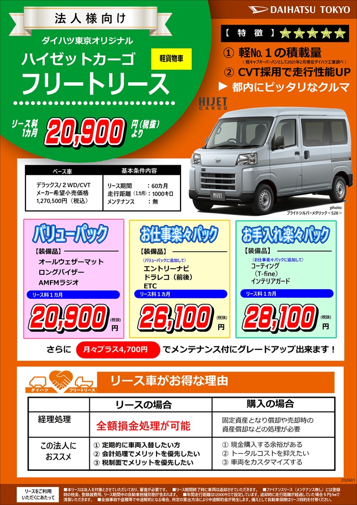 都内で大活躍の軽自動車、まるっとサポートのダイハツフリートリースをぜひご検討ください🪄