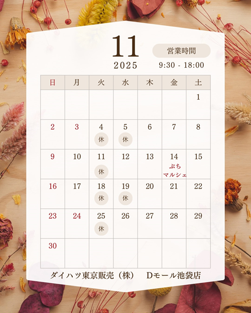本日は11月定休日のご案内です🍂