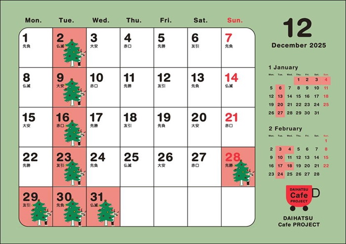 12月は毎週火曜日と、12月28日(日)~1月3日(土)まで休業となります。