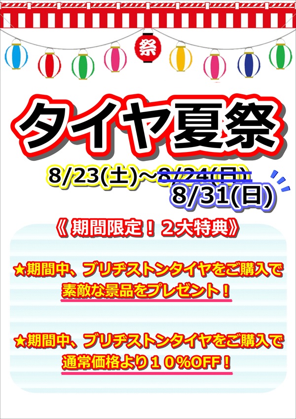 ブリヂストンタイヤ様のご厚意で、8/31(日)まで延長が決定いたしました!!