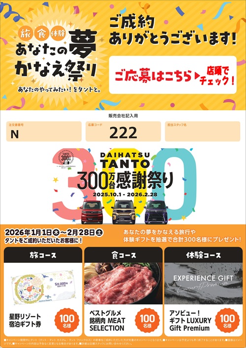タントを期間中にご成約いただいた皆様、