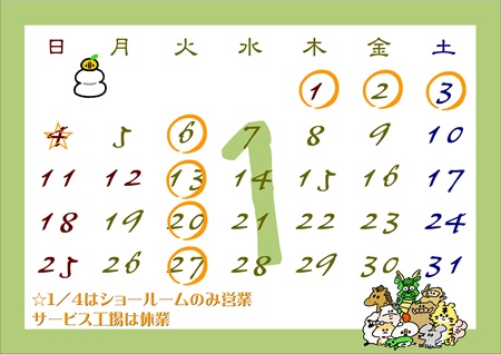 1月は毎週火曜と1日~3日までお休みをいただいております。