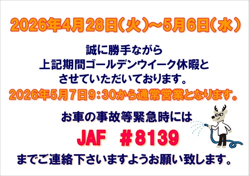 1日~6日にゴールデンウイーク休暇をいただいております。