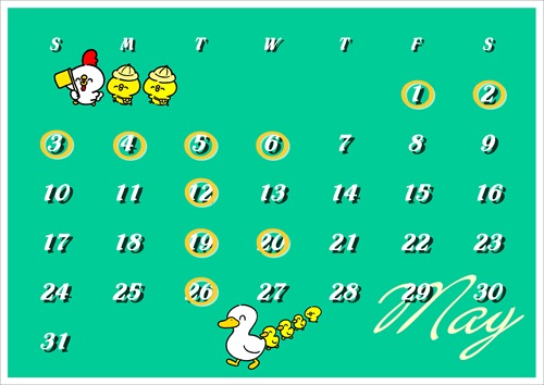 5月は、毎週火曜日と20日の水曜日に定休日を、