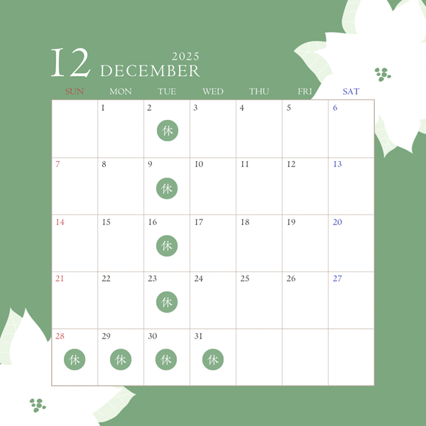さて今回は、12月の定休日をご案内させていただきます😄