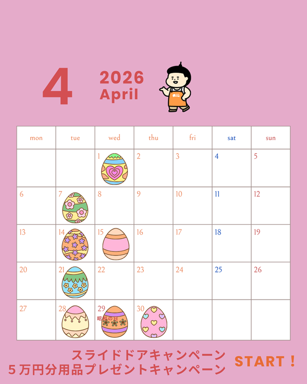 さて、4月の定休日をご案内いたします