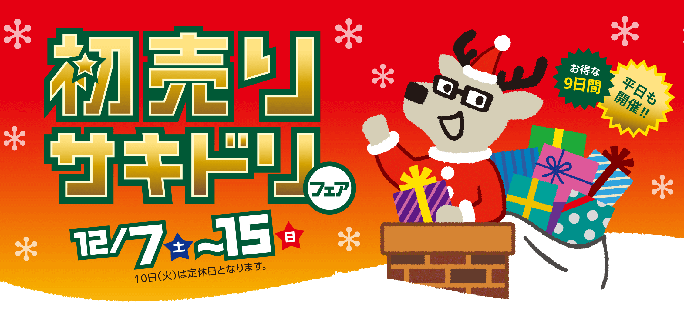 初売りサキドリフェア開催中!!12/7(土)~15(日)まで!!