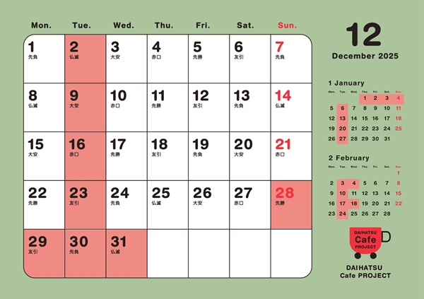 さて、本題の12月の定休日のご案内です!