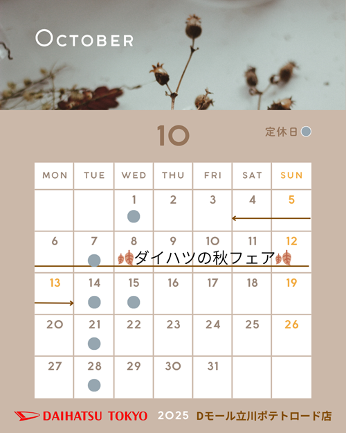定休日・スイーツ・ダイハツの秋フェア...etc