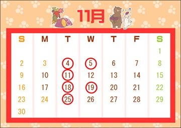 11月は、毎週火曜日と第1・3水曜日がお休みとなっております。
