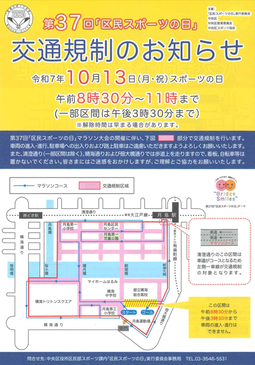 第37回『区民スポーツの日』マラソン大会開催に伴い、近隣で交通規制が行われます。