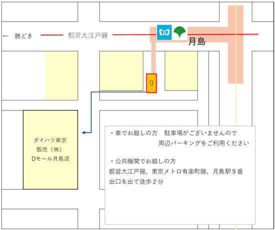会場(Dモール月島店)案内図もお載せいたします!当日、店舗駐車場はございませんのでご注意お願いいたします。