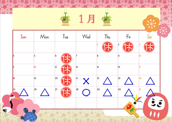 来月の店舗休日➕🎍1月の点検整備予約空き状況