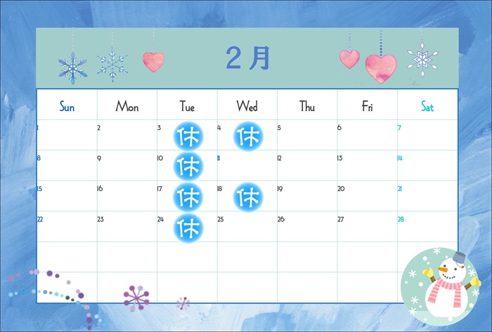 それではさっそく、来月2月の店舗休日、