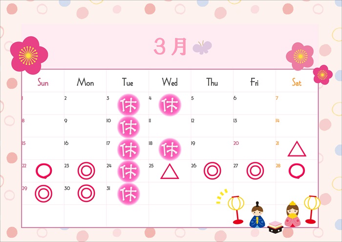 来月の店舗休日➕🎎3月の点検整備予約空き状況
