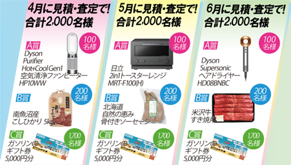 また、対象車種のお見積り、もしくは査定いただくと、抽選Wチャンスに参加できます✨