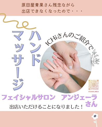 ☑フェイシャルサロン アンジェーラさまより 「ハンドマッサージ施術」
